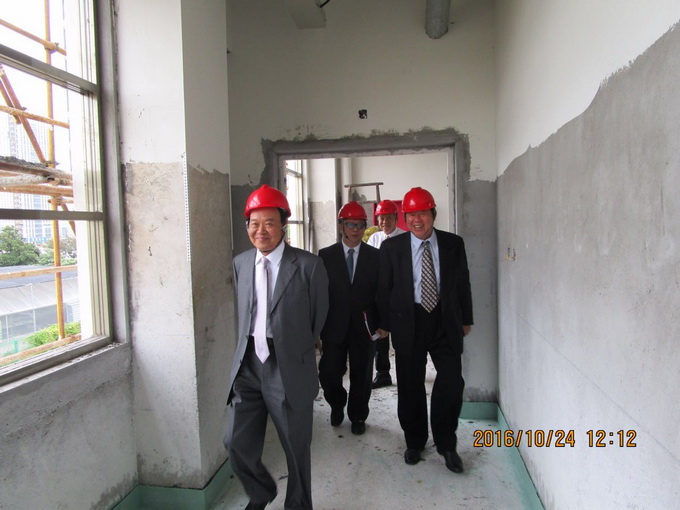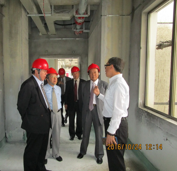 2016年10月24日上午,登云学院林赐农董事长、登云公司潘奇威董事长率领全体董事会成员,在钱勤元院长及王振州常务副院长等院领导的陪同下前往大学生活动中心施工现场视察,并听取了总务处池铭处长的汇报。