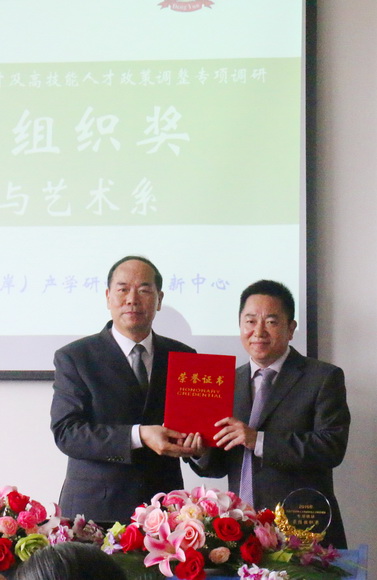 大会对本次专项调研评选出的“最佳组织奖”和“最佳成果奖”获奖团队表彰。林赐农董事长、钱勤元院长分别为受表彰系部建筑与艺术系、机电工程系颁奖。