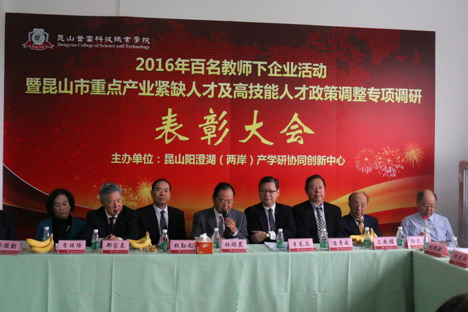 10月24日上午,2016年百名教师下企业活动---昆山市重点产业紧缺人才及高技能人才政策调整专项调研表彰大会在我院国家级实训基地隆重举行。学院董事长林赐农,执行董事李先立,董事会董事潘奇威、王秉权、李保陪、徐定睿、李国勋、柯兴树、孫稚堯、沈尤成、林世佳,全体院领导,郑家泰荣誉院长出席会议;学院产学研顾问、教务处长、人事处长、各系主任、各教研室主任等五十余人参加会议。会议由王振州常务副院长主持。