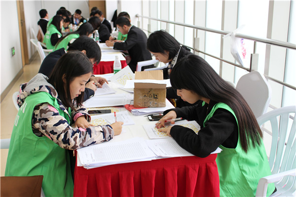 活动当天上午,40名学生接受了主办方的业务培训,了解此次活动的意义、场地、场馆分布以及每位同学的岗位设置。志愿者们被分为签到组和竞赛组两个组,其中竞赛组分为九个小组和记录组。本次服务中,同学们热情高涨,在各自的岗位上认真工作、细心周到。签到组的同学负责参赛人员的签到工作,发放服装,制作准考证,颁发参赛证书;竞赛组的同学按照统一部署在赛场各司其职,赛前,志愿者们为参赛选手准备和检查比赛用品;赛后,裁判室里志愿者们认真批阅考卷,他们不仅要在最短的时间内统计好成绩,以便主持人公布,还要保证准确性。大家尽职的敬业精神、微笑的服务态度得到了大赛组委会、参赛选手和工作人员的一致好评,活动结束后,大赛组委会为我院志愿者颁发了服务证书。在为期三天半的服务工作中,同学们体会到了服务他人的意义和乐趣,体会到了理解和宽容,锻炼了应变能力,提升了团队合作意识。通过集体的力量,大家在主办方和全国参赛选手面前展现了登云学院志愿者积极、健康、向上的精神风貌。
