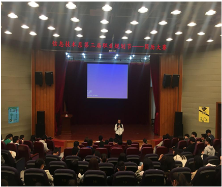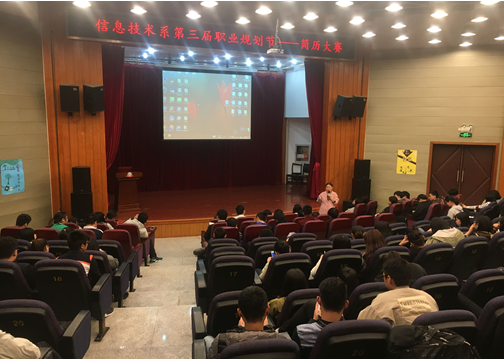 11月20日,我院信息技术系职业规划节——“简历大赛”在多功能厅举行。评委由系党支部和团总支的委员组成,200多名学生观摩了比赛。
