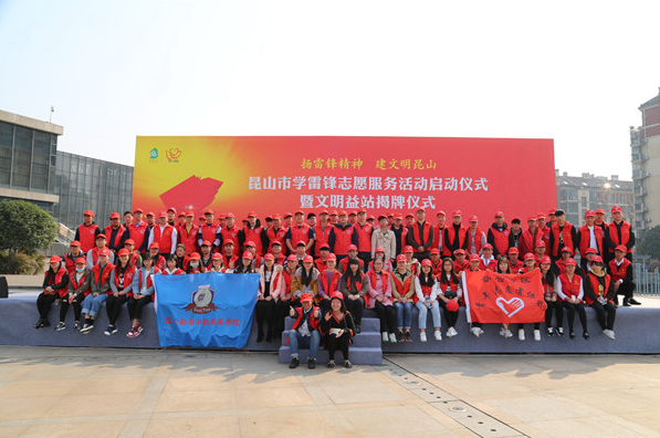 3月4日,我院团委组织百名青年志愿者赴昆山市民文化广场参加了由中共昆山市委宣传部、文明办主办,昆山市民政局、志愿者协会协办的“2017年昆山市学雷锋志愿服务活动启动仪式暨文明益站揭牌仪式”。