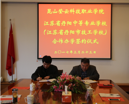 王波副院长对姜志云副校长一行的到来表示热烈欢迎,并介绍了我院省级示范性高职院建设,办学理念与特色,我院校企合作成效及“3+3”中高职衔接合作项目成果,表达了学院与丹阳中专合作办学的良好愿望。姜志云副校长介绍了丹阳中专的发展情况,希望通过与登云学院合作办学,提升自身实力,谋求合作双赢。会上,双方围绕中高职“3+3”分段培养试点人才培养方案、培养目标、课程实施、就业前景及方向等进行了深入探讨。随后,双方签订了中高职衔接试点班合作办学协议。双方表示,在今后合作过程中将不断深化中高职衔接工作,共同加强人才培养模式对接,做好专业知识、职业素养、职业技能培养方案的制订,在实践中推动双方共同发展。