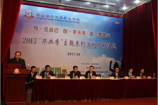 4月11日,我院举行“预见自己、创享未来、圆梦昆山”2017“毕业季”主题系列活动启动仪式,学院院长钱勤元、副院长徐伟出席仪式,特邀昆山人力资源市场副总经理华成、昆山人力资源市场文化传媒有限公司总经理殷骏惠,昆山铝业、裕元酒店、中国移动等企业就创业讲师团代表出席,各系学生工作负责人以及200余名学生代表参加了会议。仪式由就业创业办公室主任王兴亚主持。