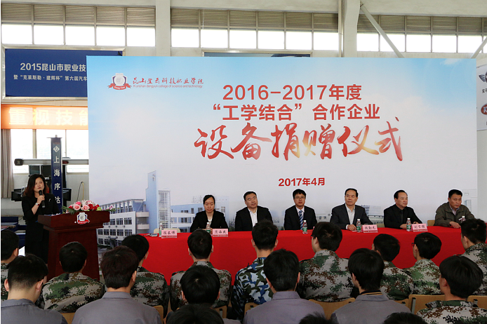 4月27日上午,我院2016-2017年度“工学结合”合作企业设备捐赠仪式在汽车系实训中心举行。我院院长钱勤元、副院长王波、院长助理陈长伟,汽车系主任刘言强,常州市瑞悦车业有限公司刘树青总经理、范海燕人事经理出席活动,师生代表参加了捐赠仪式。仪式由陈长伟院长助理主持。