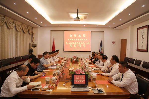 5月23日下午,江苏省教育厅副厅长苏春海,昆山市委常委、高新区党工委书记、管委会主任管凤良等领导莅校视察指导工作,江苏省考试院、昆山市教育局等有关领导陪同视察。我院李先立执行董事、郑家泰荣誉院长和全体院领导出席座谈会并作了汇报交流。座谈会由王振州常务副院长主持。