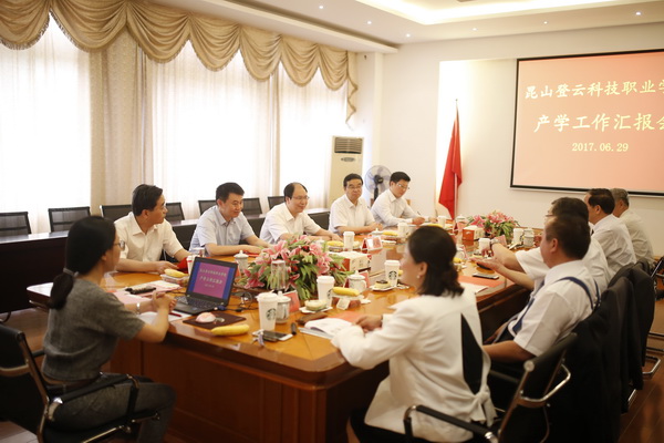 听取汇报后,丁晓昌会长对学院办学取得的成果给予充分肯定。他说,登云是一所想干实事的学校,在短短十二年间做了很多令人赞誉的事情,实属不易。现在,登云和昆山高新区进行区校产学合作,对于登云的发展具有里程碑式的意义,衷心祝愿登云的明天越来越好。