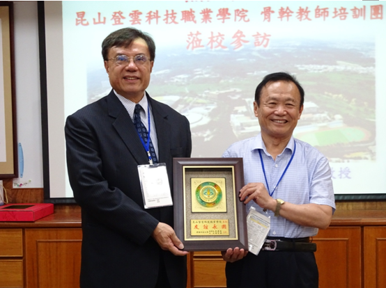 在结业仪式上,江金山总执行长表示,此次两校沟通交流是两岸职业教育交流融合的有益探索,希望日后两校加强合作、友谊永固。张国义处长代表全体赴台教师对建国科大的精心组织表示诚挚的感谢,对建国科大“优美的校园环境、深厚的文化底蕴、先进的办学理念、富有特色的‘三力‘教育模式”给予由衷的称赞。