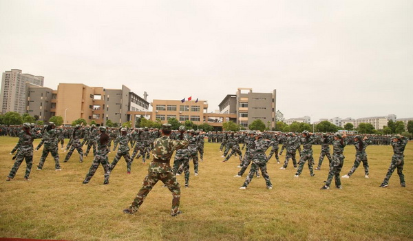 九时许,在庄严的升国旗、迎校旗仪式之后,钱勤元院长宣布军训检阅开始,参训学生喊着嘹亮的口号、迈着整齐的步伐依次经过主席台,接受检阅。紧接着,参训学生进行了队列操、擒敌拳、应急疏散演练和消防科目等汇报表演,展示了全体新生良好的精神风貌和军事素质,体现了奋发向上的精神风貌。