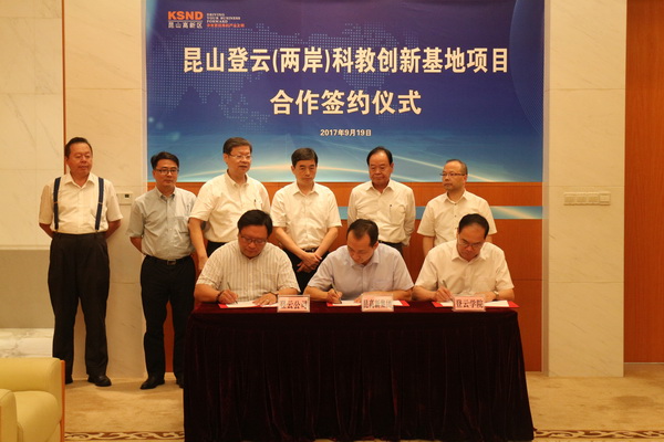 9月19日,昆山登云(两岸)科教创新基地项目合作签约仪式在昆山市高新区隆重举行。本次签约是由昆山市高新集团有限公司、登云公司、beat365会员官方网站共同签订。