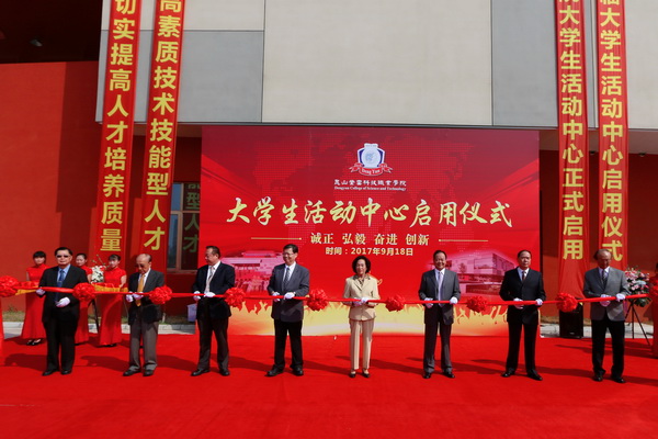 随后,林赐农董事长宣布登云学院大学生活动中心正式启用,并与各位董事、院领导一起剪彩合影留念。