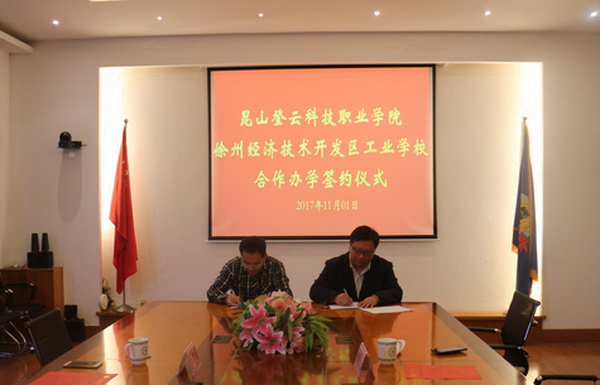 最后,王常务副院长代表学院与徐州经济开发区工业学校签署了中高职衔接试点班合作协议。双方表示,在今后合作与交流过程中,将继续深化中高职衔接工作,共同加强人才培养模式对接,做好专业知识、职业素养、职业技能培养方案的制订,在实践中推动共同发展。