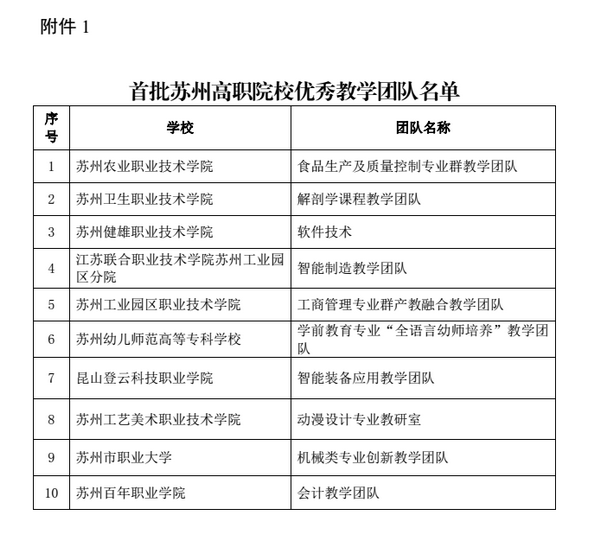 日前,苏州市教育局(苏教高职〔2017〕46号)文件公布,我院“智能装备应用教学团队”被评为首批苏州市高职院校优秀教学团队,“机电一体化技术专业”、“数控加工工艺及编程”课程也都顺利通过苏州市优秀新专业、新课程中期检查。