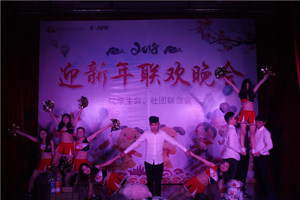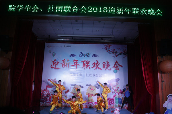 12月25日晚,院学生会、社团联合会2018迎新年联欢晚会在多功能厅顺利举行,学生处、团委负责人、各系团总支及辅导员与同学们一起观看了演出。