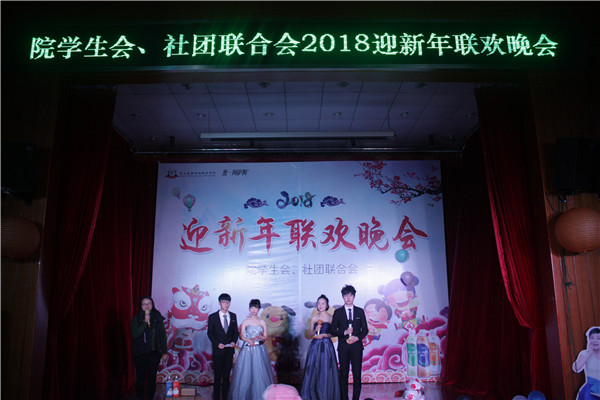 12月25日晚,院学生会、社团联合会2018迎新年联欢晚会在多功能厅顺利举行,学生处、团委负责人、各系团总支及辅导员与同学们一起观看了演出。