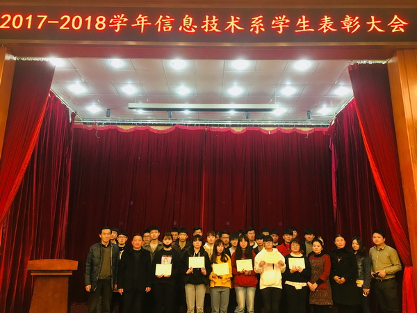 为进一步发挥优秀学生在学风建设和人才培养中的示范引领作用,激发广大学生养成良好的思想品质和高尚的道德情操,3月12日下午,信息技术系在多功能厅举行2017-2018学年学生表彰大会,对26名优秀学生干部、8间文明宿舍和4个优秀班集体进行表彰。系主任梁明、主任助理李以卓及全体辅导员参加大会,李伟民老师主持。