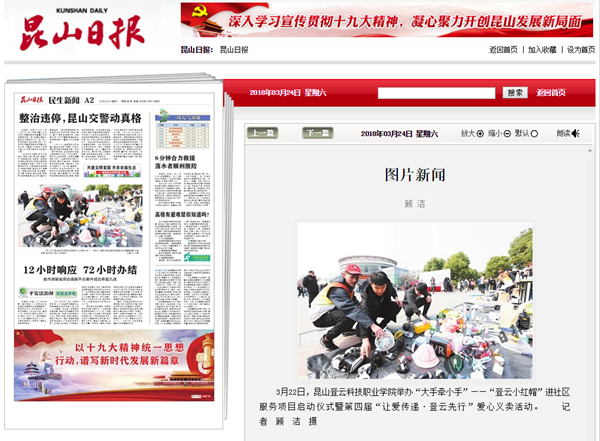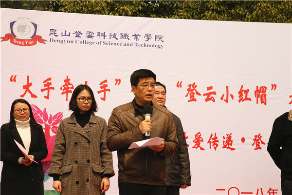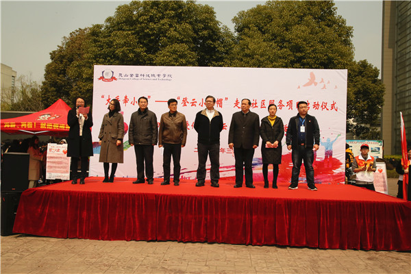为弘扬雷锋精神,践行社会主义核心价值观,倡导良好道德风尚, 3月22日中午,我院“大手牵小手”——“登云小红帽”走进社区服务项目启动仪式暨第四届“让爱传递•登云先行”爱心义卖活动在学院圆厅门口举行。执行董事李先立,院领导钱勤元、徐伟出席启动仪式。党院办、各系党总支、仁和社区负责人及师生代表参加启动仪式。仪式由学生处副处长、团委书记苏琼瑶主持,昆山日报记者对此次活动进行了跟踪报道。