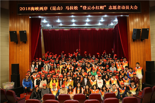 4月13日中午,我院在多功能报告厅召开服务海峡两岸(昆山)马拉松赛志愿者动员大会,190名“登云小红帽”志愿者参加会议。