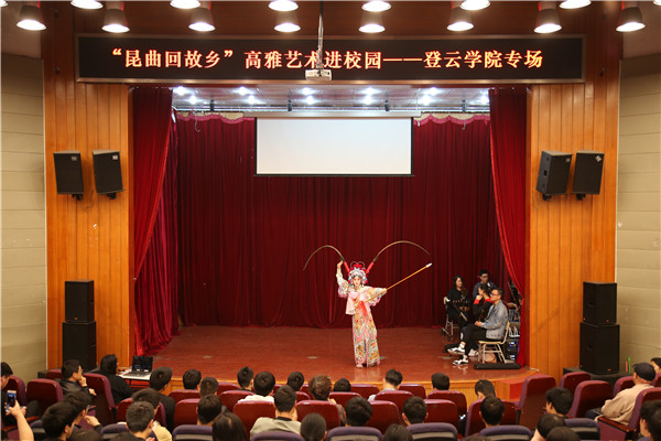 为弘扬优秀民族文化,丰富校园文化生活,4月12日下午2点,由中共昆山市委宣传部、昆山市文广新局、昆山市教育局主办,昆山当代昆剧院承办的“昆曲回故乡·高雅艺术进校园”活动走进登云学院,学院师生近250人到场观看。