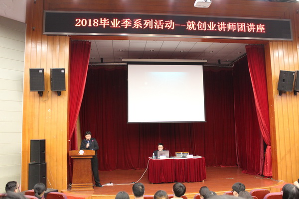 4月26日下午,江苏付临门信息科技有限公司董事长耿金伟先生莅校为同学们做了一场精彩的创业主题讲座。各系240多名师生代表聆听了讲座。