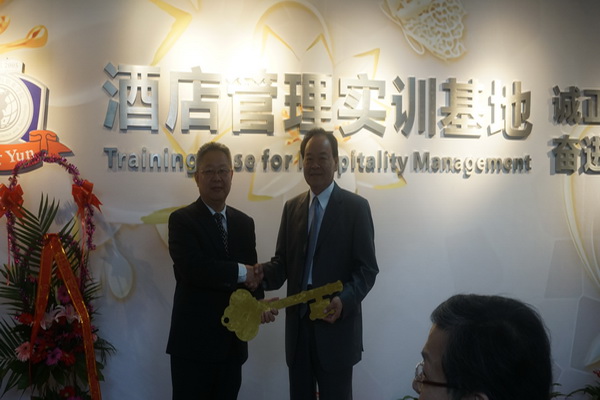 林赐农董事长向商管系李岚主任授予实训基地金钥匙,标志着实训基地正式启用。
