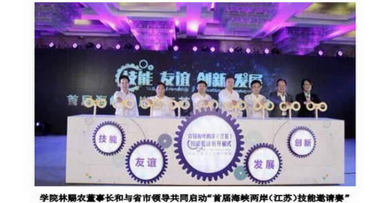5月25至27日,由江苏省人力资源和社会保障厅与昆山市人民政府联合主办,我院具体承办的首届海峡两岸(江苏)技能邀请赛在学院隆重举行。省人力资源和社会保障厅副厅长朱从明,省台办副巡视员吴伟荣,苏州市副市长曹后灵,苏州市人社局局长朱正,昆山市委副书记张月林,学院董事长林赐农出席开幕式,台湾产业经济专家杜紫军,台湾两岸现代职业教育协会、台湾教育专家吴清基,台湾产业专家汪雅康应邀出席开幕式并进行了赛事观摩。大赛以“技能·友谊·创新·发展”为主题,共吸引了来自海峡两岸28所中高职院校、12家企业的教练、参赛选手及嘉宾、裁判约400人出席。