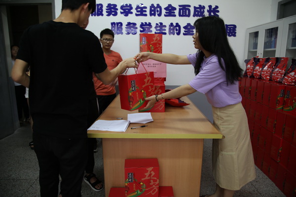 此次活动为我院“为希望护航”八送暖心资助工程的子项目,旨在在端午节到来之际,给同学们送去关怀与温暖。在学生宿舍,学生处领导首先代表学校对端午小长假不能回家的家庭经济困难生表示问候,并为同学们送上端午爱心粽子礼盒。老师们关切询问同学们在校的学习、生活情况,希望同学们把暂时的困难当作学习动力,心怀梦想,刻苦学习,并表示学校会尽全力“不让任何一个学生因家庭经济困难而失学”。关爱的话语让同学们倍感温暖和惊喜。