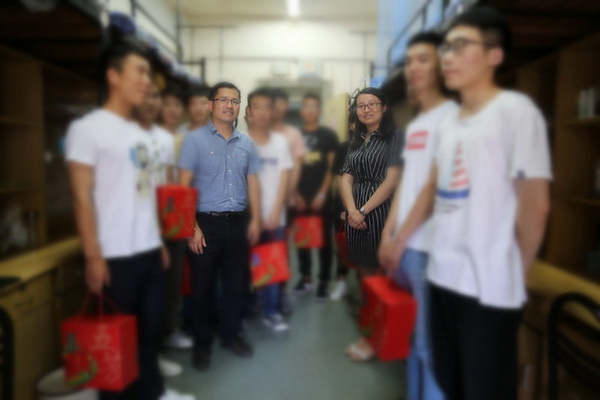6月14日,学生处副处长苏琼瑶、李源泉等相关老师,深入学生宿舍,慰问端午小长假不能回家的家庭经济困难生。