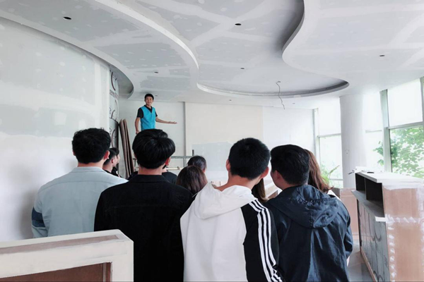 该单位对此教学方式给予极大的肯定和支持,并协助建筑与艺术系建筑室内设计专业的师生进行现场项目教学。《建筑材料与施工工艺》、《AutoCAD施工图》、《工程项目管理》等课程的教师多次带领建艺系17级和18级4个班100多位学生进入施工现场观摩学习。施工现场项目化教学把老师、学生紧密地结合在一起,老师生动地讲解该智能制造项目方案的设计原理,学生现场学习了室内吊顶、隔墙、地板砖等施工工艺,观看了施工人员的实际操作。现场教学调动了同学们的学习积极性,使同学们学到了更多的实践性知识。