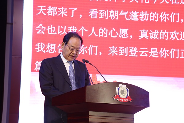 最后,林赐农董事长发表了热情恳切的讲话。他在肯定学院建设取得累累硕果的同时,对同学们提出三点希望:一是志存高远,筑牢“担当”意识,不仅要有大目标、大志向,更要有大担当,在实现远大抱负过程中坚守诚信;二是积厚成器,提升“担当”的能力,要成为主动学习的登云人,要坚定对学习知识、造福社会的责任感、使命感,不断提升责任担当的能力;三是做好当下,走实“担当”的脚步,要把担当付诸行动,从当下做起,从小事做起,积“小作为”,方成“大担当”。他衷心地祝愿同学们能够与登云学院共成长、同进步,努力成长为德才兼备、堪当大任的新时代优秀登云人。