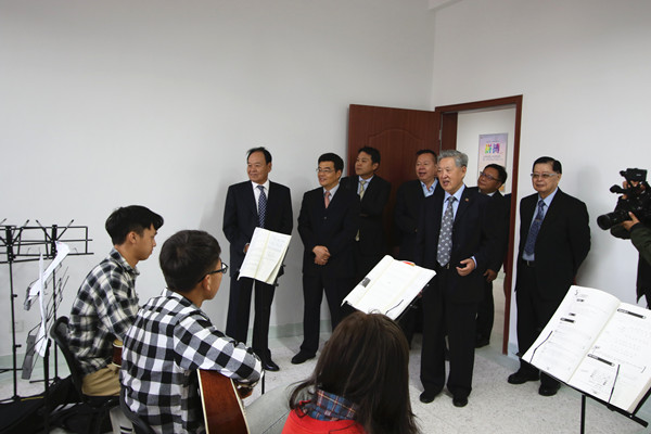 最后,领导们实地参观了大学生活动中心学生社团活动室、学生会社团联合会办公室。林赐农董事长欣赏了吉他社社员带来的风采展示,并与活动室内的同学进行亲切交谈,了解社团活动情况,鼓励同学们要积极参与课外活动,提高实践能力。