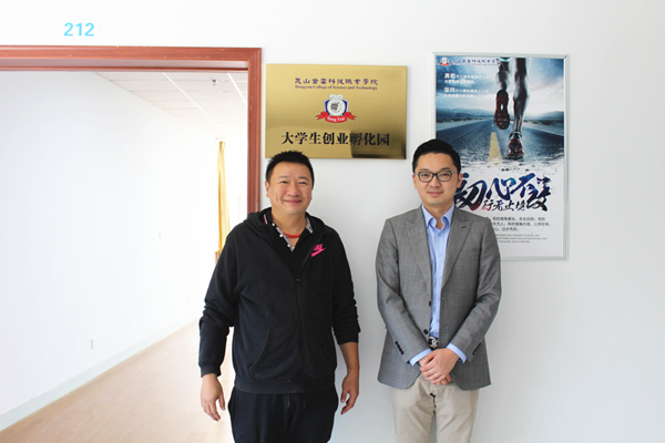 王兴亚主任从孵化园建设、功能分区、管理服务、创业项目遴选等方面作了详细介绍。蒋晶主任高度肯定了我院大学生创业孵化园的建设,指出孵化园的投入使用,必将大大提升登云学院创新创业教育水平,为大学生创业提供更加坚实的平台。他同时介绍了昆山市政府对大学生创业扶持的最新政策。随后,双方就创业导师共享、创业培训进校园、创新创业大赛等事宜进行了深入交流。