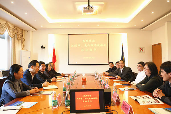 龚振东副主任感谢院领导的热情接待,肯定了我院的办学成果以及为昆山市经济社会发展作出的贡献。他对我院的两岸教育文化交流合作优势、工学结合专班特色、产教深度融合发展等方面进行了深入了解,对昆山高等教育的发展有了进一步的认识。他期望借此机会,可以更多地学习到昆山市高等教育推动经济社会发展的成熟经验,加强交流,互相学习,共同进步。