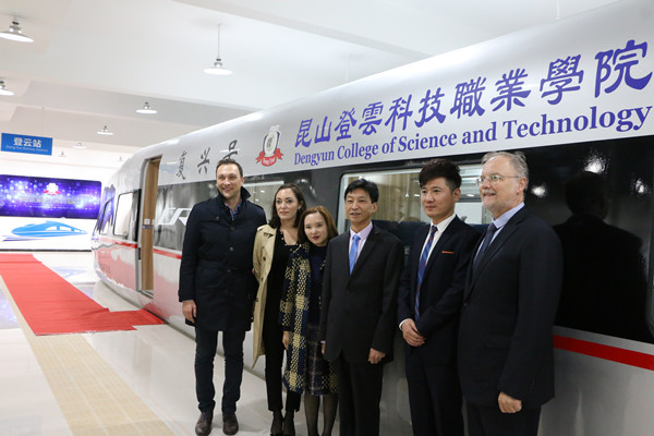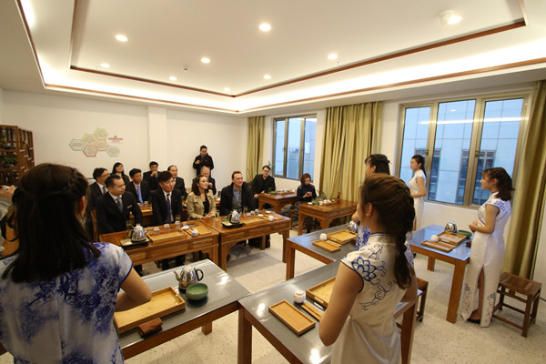 来访嘉宾一行在院领导的陪同下参观了高铁乘务实训基地、酒店管理实训基地、智能制造实训中心、学生社团活动室、创业孵化园。Andreas Schweighofer教授对我院先进的设备实训条件、丰富多彩的学生社团活动十分赞赏,他说:登云学院实训基地的建设对于提升学生实践能力有很大裨益,社团活动展现出了学生良好的精神风貌。随后,嘉宾们还饶有兴致地参与到跆拳道和cosplay活动中。