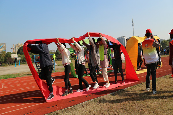 天气虽然寒冷,但学员们依旧热情高涨,指导老师将各系学员随机分成六组二十四队,进行了“同心击鼓”、“有轨电车”、“不倒森林”、“两人三足”、“珠行万里”、“摸石头过河”、“无敌风火轮”等趣味活动。现场气氛十分活跃,妙趣横生的游戏将配合默契的陌生学员团结在一起。通过拓展,增进了教员和学员之间的情感,有利于增强他们的团队合作意识,丰富团学干部们的校园文化生活。
