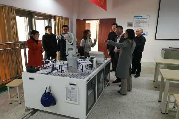 双方围绕教育项目的合作规划、课程嵌入和融合、人才培养等问题进行深入交流。会议结束后,在陈长伟院长助理的陪同下,单强院长一行参观了学院智能制造实训基地。