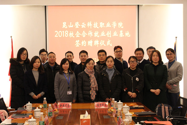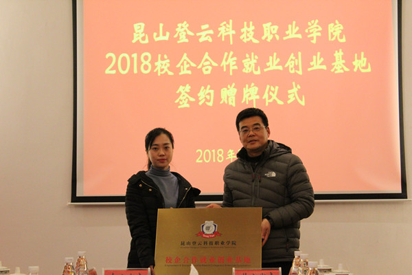 12月25日下午,我院在大会议室举行2018校企合作就业创业基地签约赠牌仪式。徐伟副院长出席会议。参加签约赠牌仪式的合作企业有华天科技(昆山)有限公司、苏州指南车机器人科技有限公司、昆山富骏汽车销售服务有限公司、昆山逸秀培训教育有限公司、上海星巴克咖啡经营有限公司、昆山美丽狮汽车服务有限公司、昆山翌湾电子商务有限公司、研祥集团等8家企业。就创办等相关部门老师参加会议,会议由就创办王兴亚主任主持。