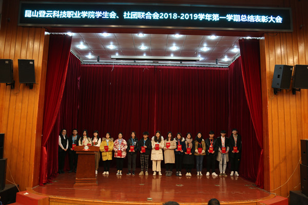 大会在团歌中拉开帷幕,第十四届学生会主席宣惠雅和第六届社联主席董琪元作学期工作总结报告,回顾了学期以来的工作情况和成果。团委侯延华副书记宣读2018-2019学年第一学期“个人进步奖”、“优秀社团干部”、“优秀学生会干部”、“优秀社联干部”表彰名单及学生干部任职调整名单,苏琼瑶书记为获奖同学颁发荣誉证书。