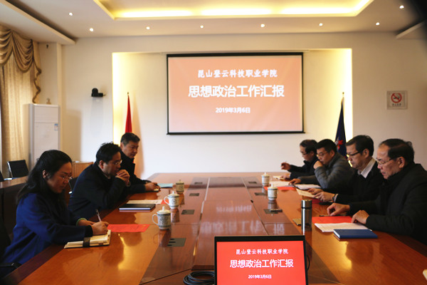 3月6日下午,昆山市教育局金建鸿局长一行莅临我院调研思想政治工作,李先立执行董事、钱勤元院长、徐伟副院长参加会议。