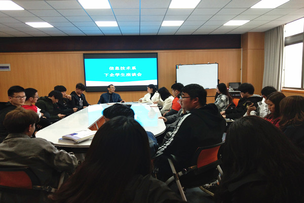 3月21日中午,信息技术系在A+雏鹰班教室召开下企学生座谈会。系主任梁明出席会议,主任助理何玉勤和辅导员老师、部分寒假下企学生、参加座谈。
