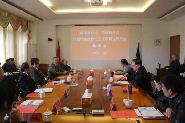 钱勤元院长汇报了我院省示范校建设验收情况。自立项以来,在学院董事会的大力支持和全院上下的共同努力下,我院以省示范校建设为主线,依托两岸文化教育交流平台优势,立足“工学结合”、“产教融合”,创新校企“双主体育人”模式,培养了一大批深受企业和社会赞誉的优秀毕业生,各项事业取得蓬勃发展:一是凝聚“政行企校”示范建设合力,超额完成任务书设定的建设任务;二是加强制度体系建设,增强合作办学活力;三是创新人才培养模式,提升人才培养质量;四是多措并举培养师资,加强师资队伍建设;五是整合多方社会优质资源,加强办学内涵建设。学院将以省示范校验收通过为新的起点,改革创新,奋进突破,实现高质量的全新一跃。