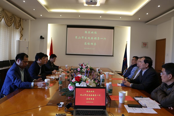 4月12日下午,昆山市发改委副书记、副主任万继民携昆山试验区推进办、市台办经济科相关部门负责同志莅临我院,就学院事业发展规划进行调研,受到我院李先立执行董事、钱勤元院长、王振州常务副院长、徐伟副院长等领导热情接待。