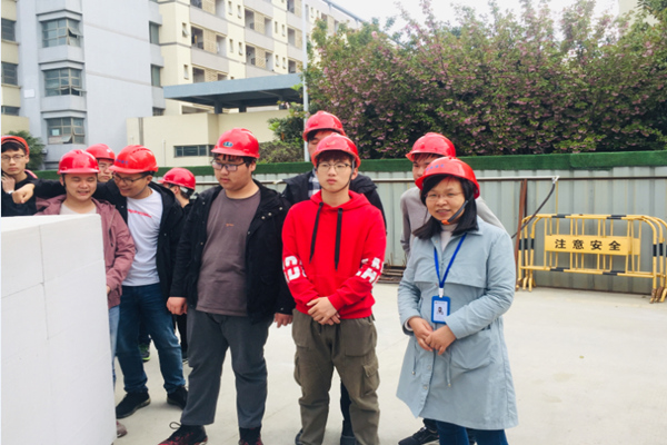 总务处沈祥和杨国强两位老师向同学们介绍了实训大楼的建设概况。宋主任向同学们详细讲解了实训楼的细部结构以及施工规范,让同学们对实训楼的构造组成和施工流程有了一定了解。在施工方技术人员和监理公司老师的引领下,同学们有序地进入实训楼施工现场进行观摩。观摩参观过程中的实例讲解让同学们对建筑设计知识、施工流程和施工安全有了进一步的认识。