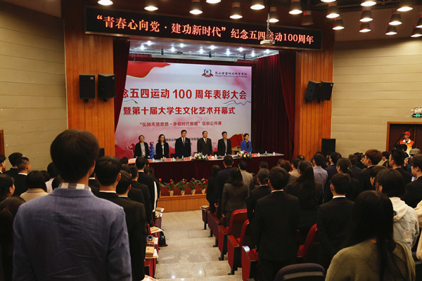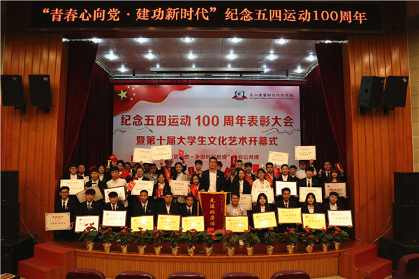 为纪念五四运动100周年,进一步弘扬五四爱国精神,4月29日下午,我院“青春心向党·建功新时代”纪念五四运动100周年表彰大会在学院多功能报告厅隆重举行。昆山团市委副书记朱飞波,学院党委书记、院长钱勤元,党委副书记、副院长徐伟,院长助理陈长伟出席了大会。大会由学生处副处长、团委书记苏琼瑶主持,党委委员朱翠芳、各系党总支副书记、各系团总支书记、委员以及两百多名团员青年代表参加了大会。