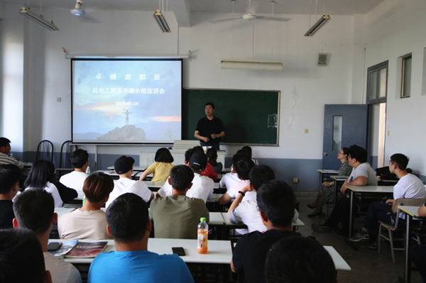 5月24日中午,机电工程系在J3-203教室组织召开了兴趣小组宣讲会。黄志辉主任出席,刘银景主任助理、各兴趣小组负责人和40多名兴趣小组同学参加了会议。朱爱梅副主任主持会议。