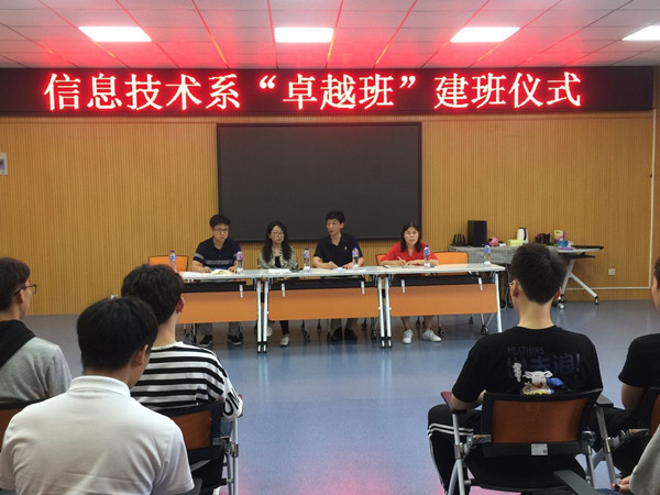 为响应学院“着力稳定一批、着重提升一批、着眼拔尖一批“的号召,6月18号下午,信息技术系首届“卓越班“建班仪式在雏鹰班教室顺利举行。张进明执行院长出席,质管处罗瑜处长、殷耀文副主任、相关教师和20名“卓越班”学生参加。