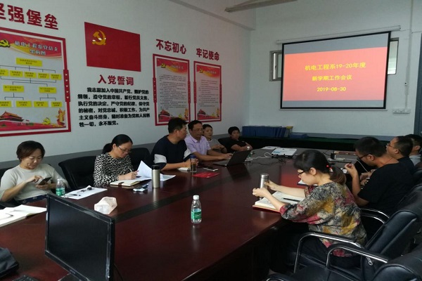 8月30日下午,机电工程系召开了2019-2020学年第一学期学期工作会议,会议由系主任黄志辉主持,全体教职工参会。