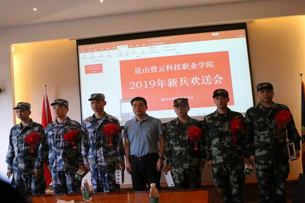 9月12日下午,我院举行2019年新兵欢送会。徐伟副院长、学生处苏琼瑶副处长、各系学工主任、辅导员代表及新兵参会。会议由人武部部长助理杨开华主持。