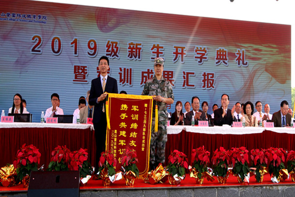 会上,陈长伟副院长代表学院宣读表彰决定,对此次军训中同学们的出色表现给予了充分肯定。董事会领导和院领导分别为军训优秀学员、军训优秀指导员颁奖。为了感谢73049部队对军训工作的支持和辛勤付出,张进明执行院长代表学院向部队致赠了锦旗。