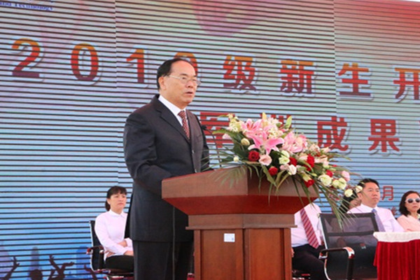 林赐农董事长向新生代表授旗,并代表董事会发表了重要讲话。他回顾了学院所取得荣誉,擎画了登云未来发展蓝图。他希望同学们参与到学院事业发展建设中来,按照学院各专业培养的要求,勤奋学习,掌握实用的专业知识和专业技能,学会实用性人才所需要的“工具、专业、人文、人格、行动力”五种素养。同时,希望同学们在即将开启的学习生涯中,要牢记“以学为重、以学为尊、以学为用、以学为善”四点要求,踏踏实实走好人生的每一步。最后,他号召同学们与老师们一起,问题共对、愿景共同、责任共当,真正专注于学业、以学为尊,不负韶华。